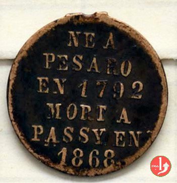 Verso: nel campo: NE A = PESARO = EN 1792 = MORT A = PASSY EN = 1868