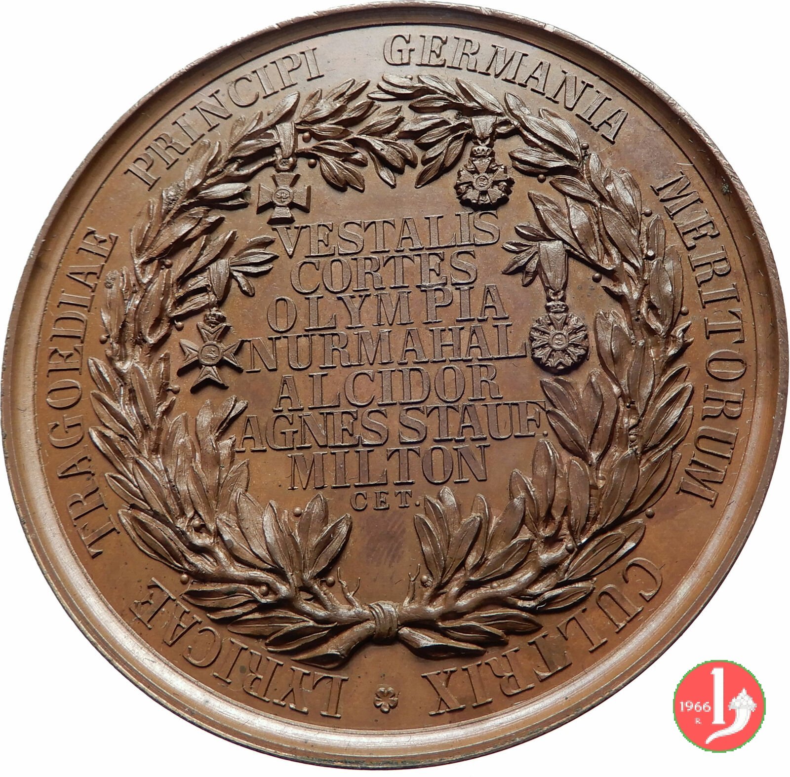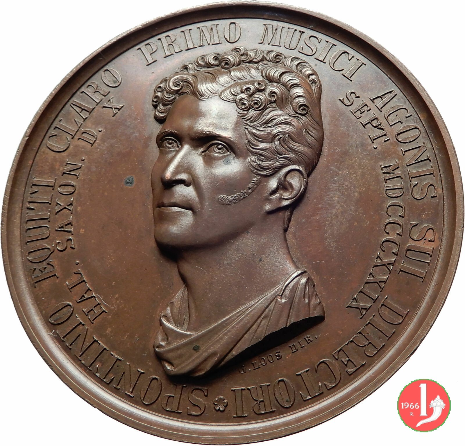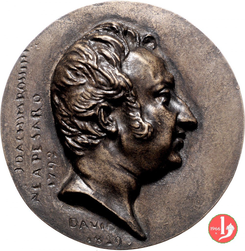 Verso: nel campo: MEMBRO = DEL R. ISTITUTO DI FRANCIA = E DELLA LEGION D'ONORE = PRIMO COMPOSITORE DI MUSICA = DI S. M. CRISTIANISS. = NATO IN PESARO = MDCCXCII