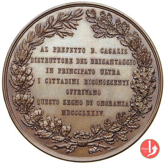 Dritto: nella medaglia centrale: ghirlanda di alloro, fermata, in basso, da nastro incrociato: