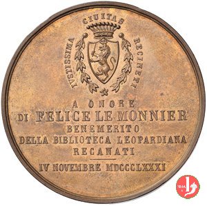Verso: AL CITTADINO AL GENIO LA PATRIA E L'ARTE = * AGOSTO MDCCCLXIX *