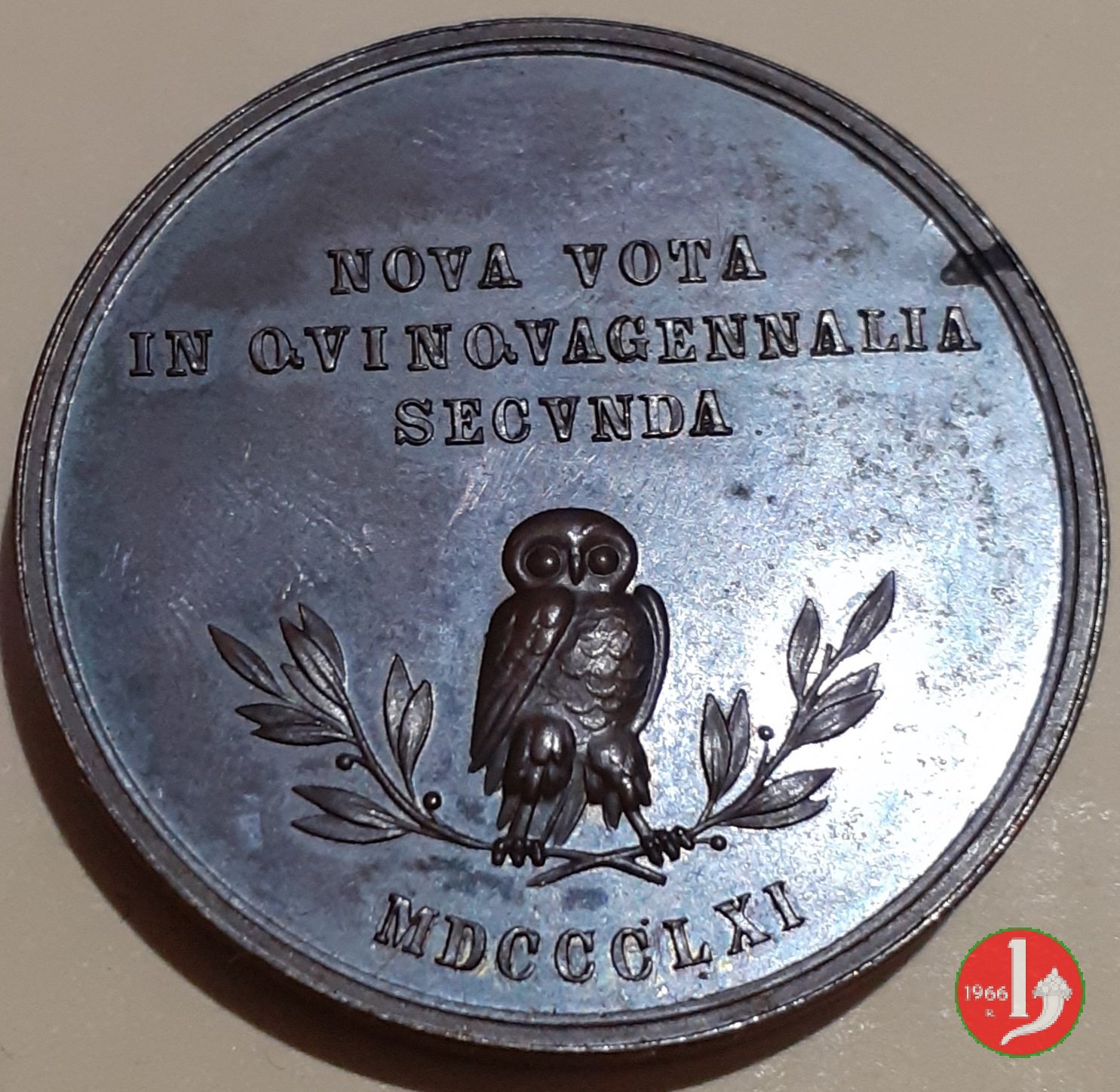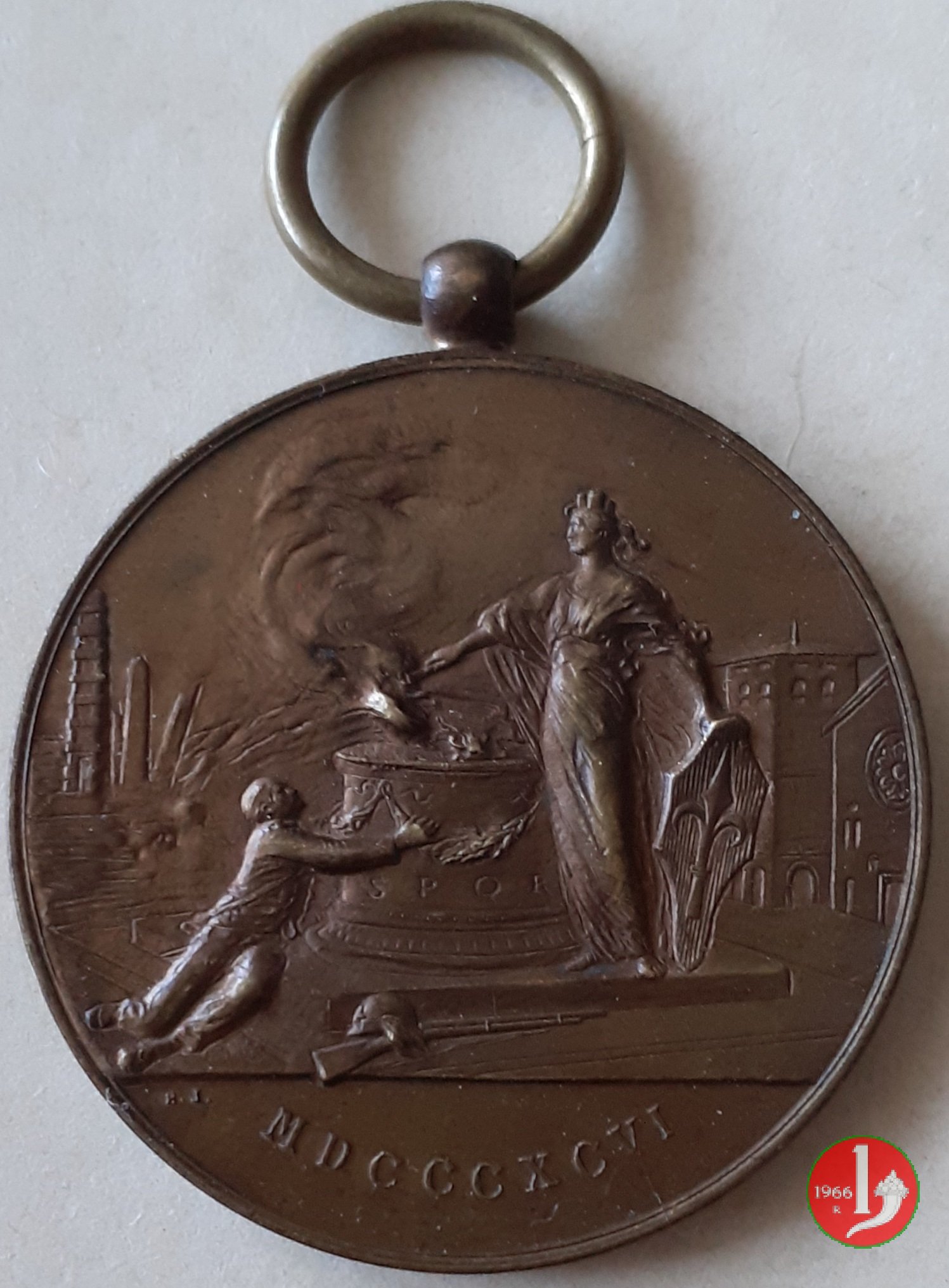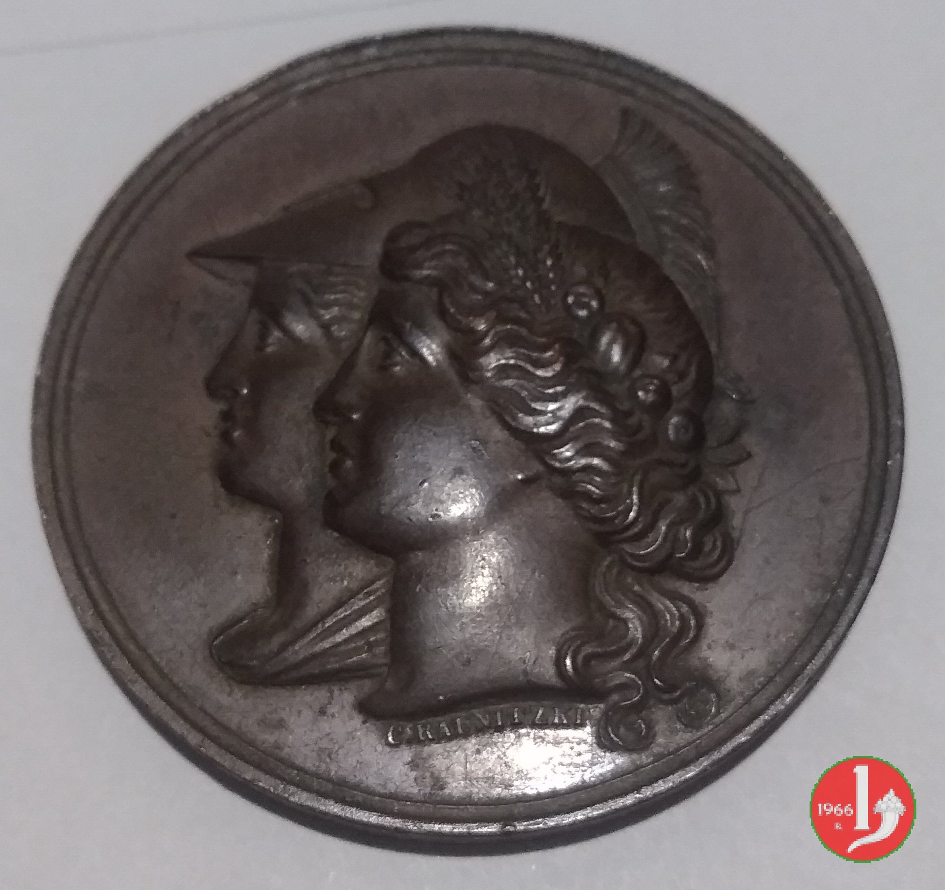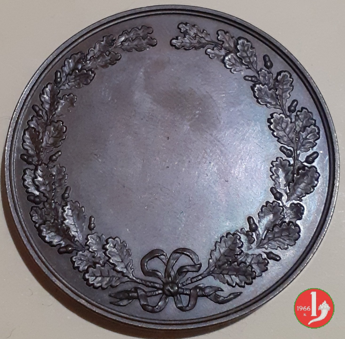 Verso: nel campo, entro rami d'alloro legati in basso da nastro: ONORIAMO = LE = ARTI
