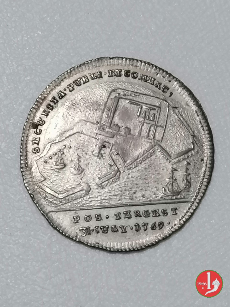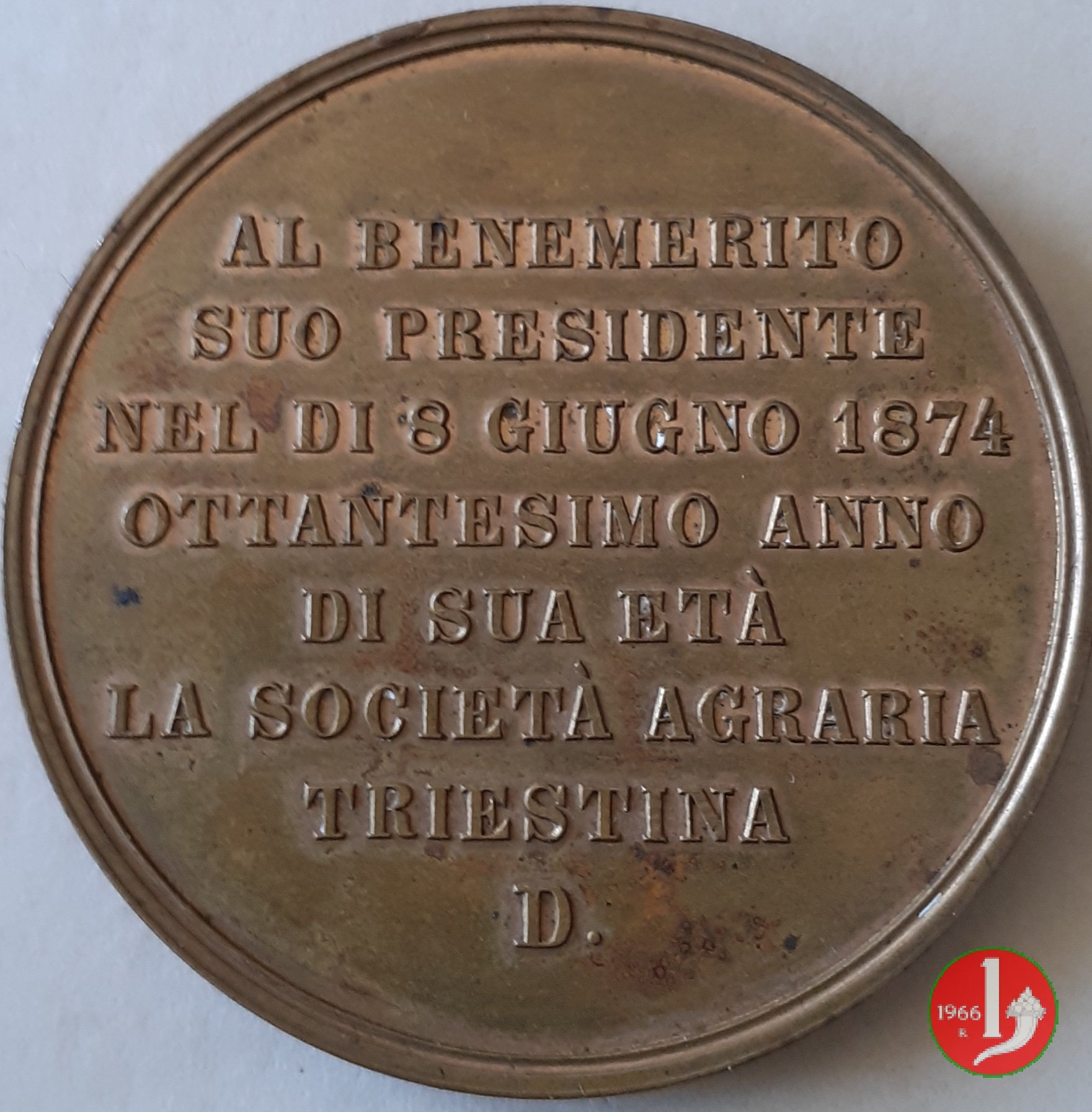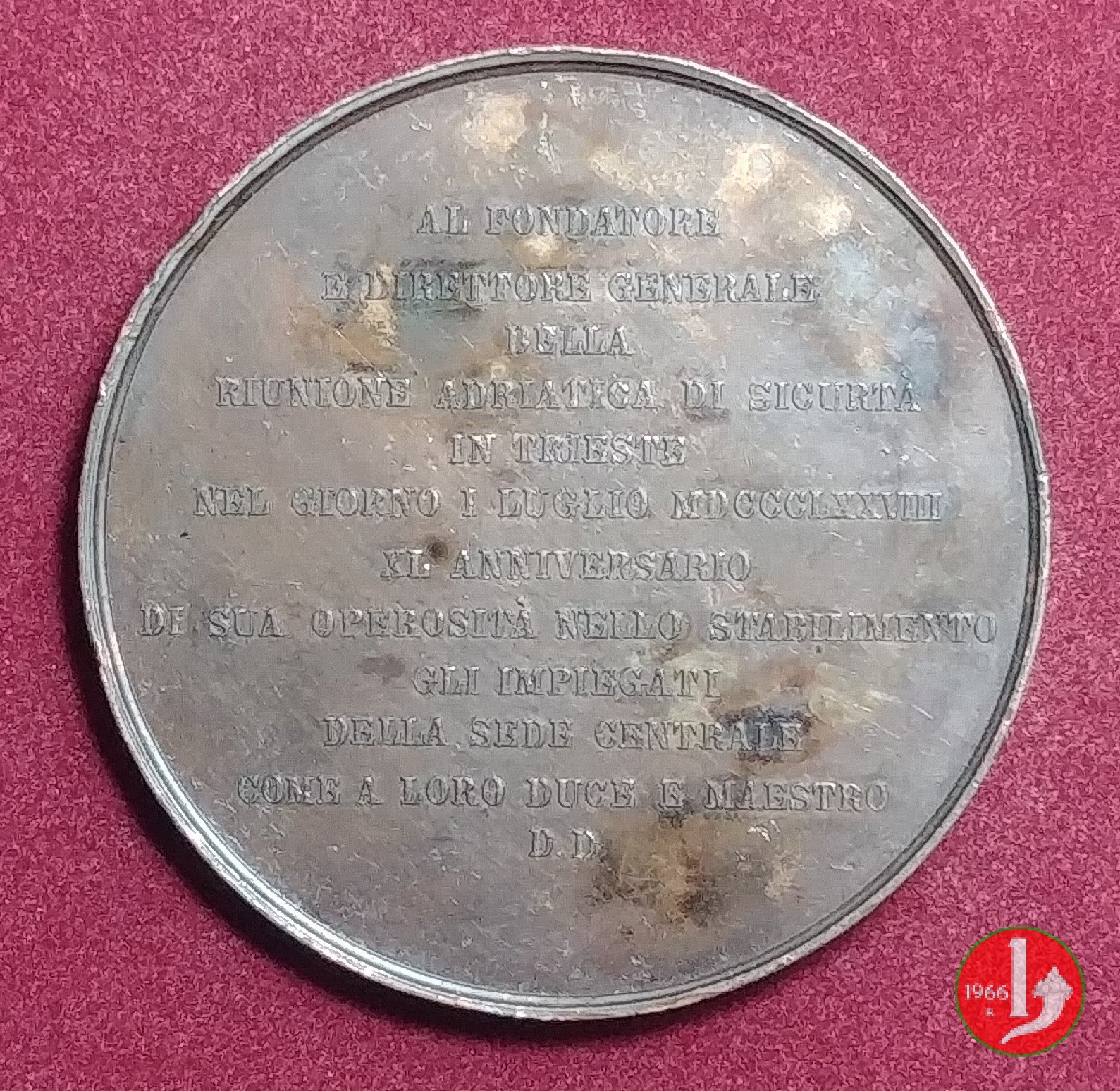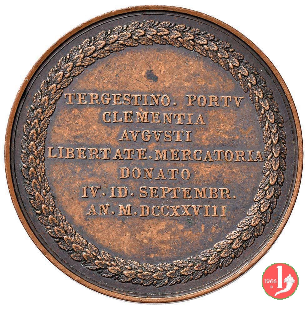 Verso: nel campo: LAPIDE = AVSPICALI = RITE = POSITO = AN. = M • DCCC • XXVIII • = TERGESTE.