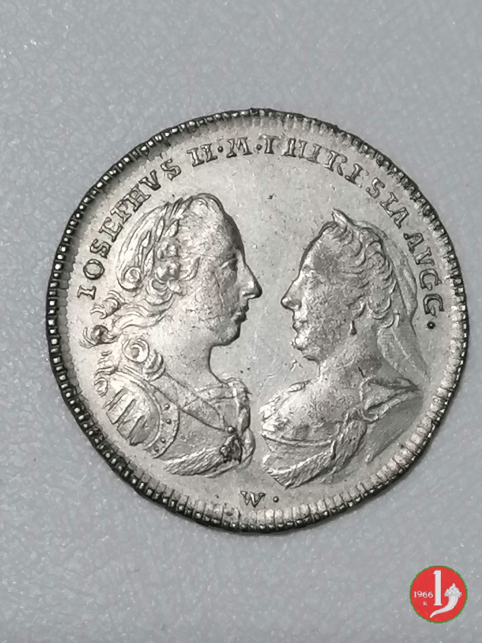 busti affrontati di Maria Teresa, diademata e velata e di Giuseppe II con divisa e collare del Toson d'oro