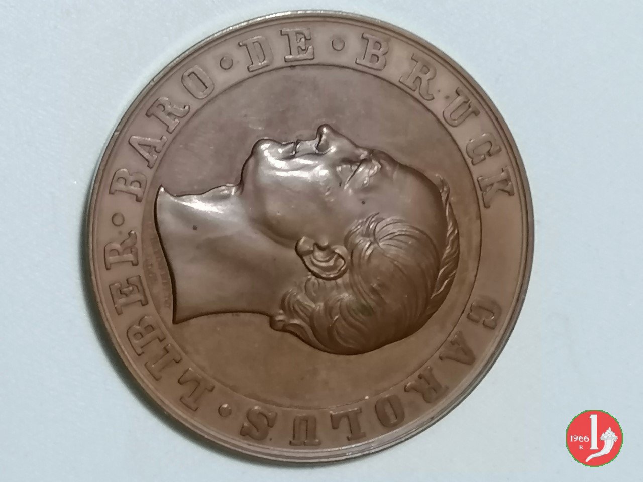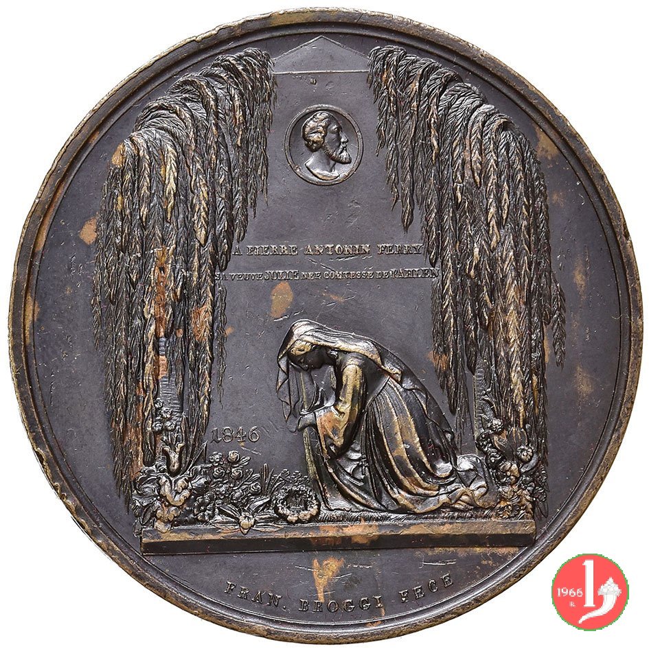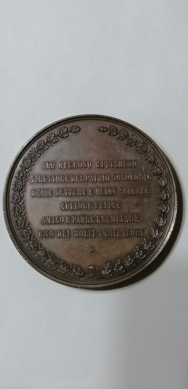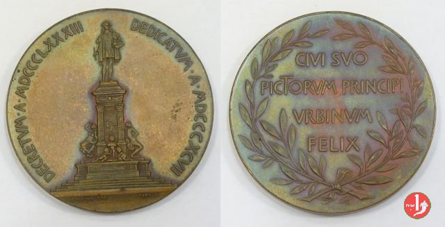 Verso: nel campo, tra rami d'alloro legati in basso da nastro: CIVI SVO = PICTORVM PRINCIPI = VRBINVM = FELIX