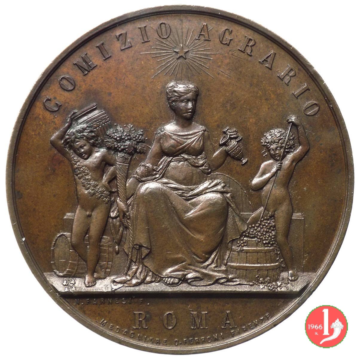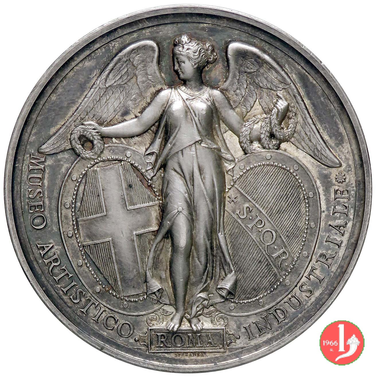 Dritto: tra rami di quercia e d'alloro, fermati in basso da ovale ornato SPQR tra bandiere e ai lati da cannocchiali decussati e mappamondo: ROMA = MDCCCLXXXIII