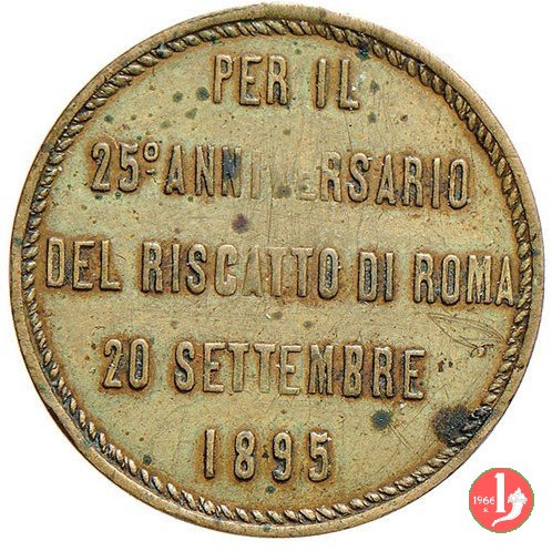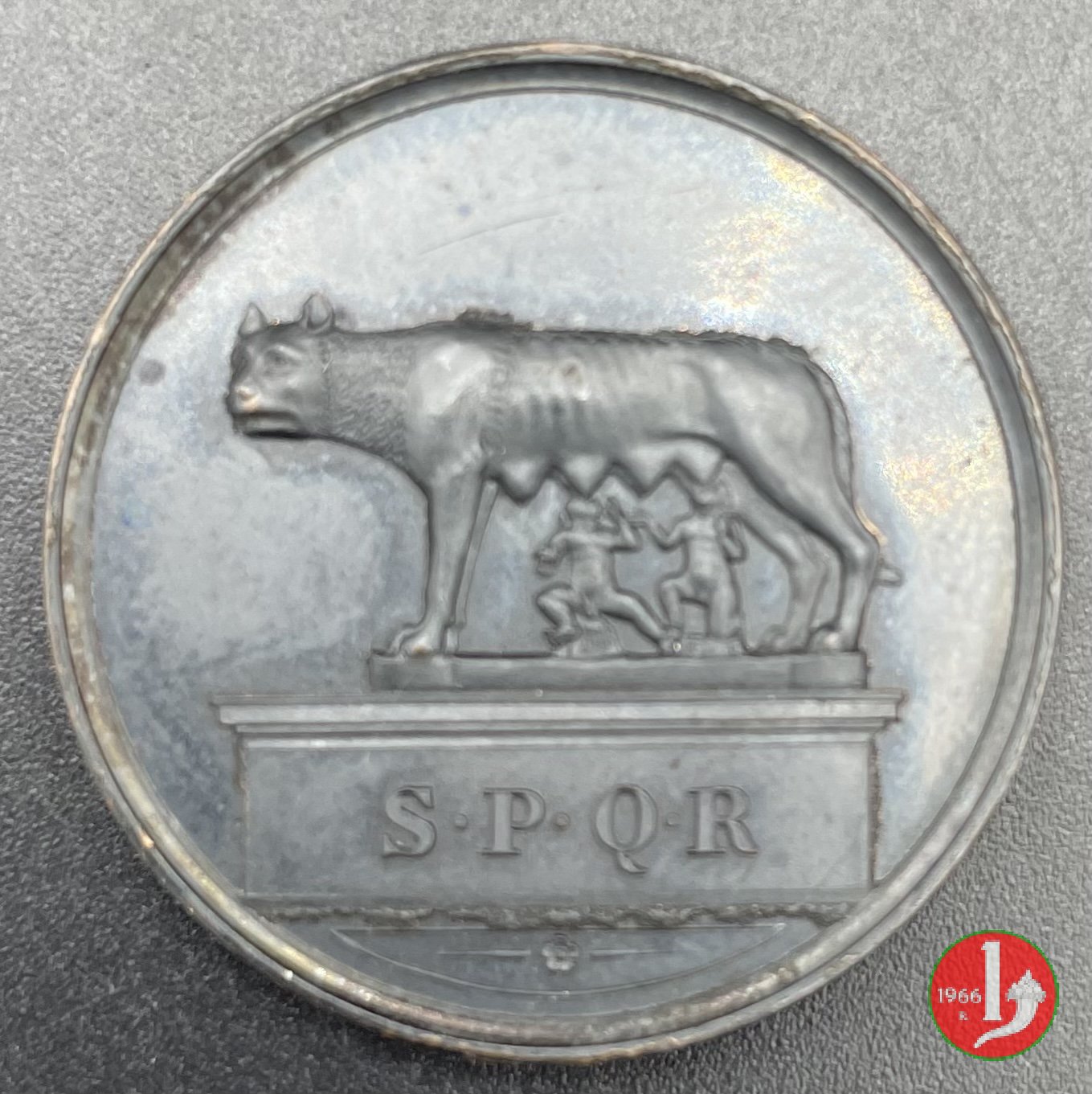 Verso: entro rami di quercia legati in basso da nastro e sormontati da stella raggiante: ROMA = RIVENDICATA = AI SUOI = LIBERATORI