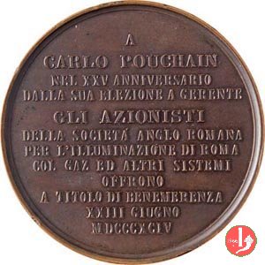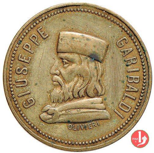 Verso: nel campo: L'ANNO • CENTESIMO = DALLA • SVA • MORTE = I • CONCITTADINI = XII  • APRILE = MDCCCLXXXII  = C M = fregio