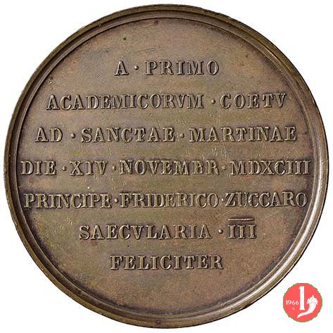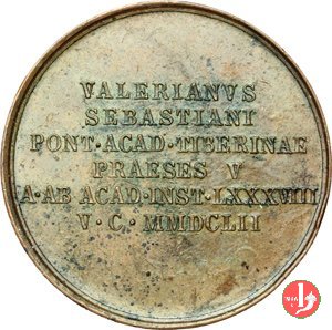 Verso: nel campo: PETRVS = TENERANI = ACAD • TIBERINAE = PRAESES = A • AB • ACAD • INST • XXXV  = V • C • MMDLXCIX