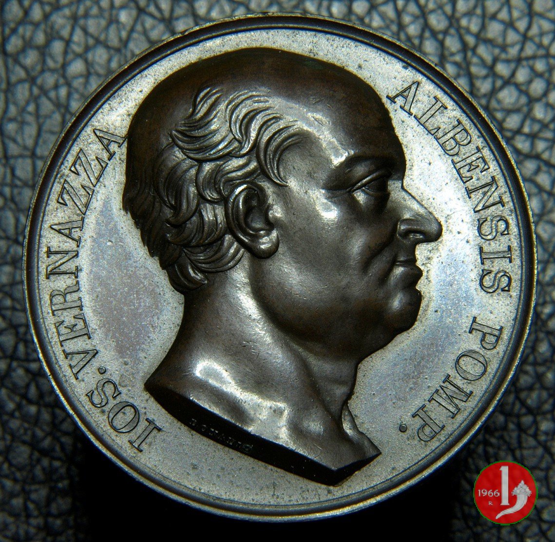Verso: nel campo: NATUS = AN. M.DCC.XLIX. = ASTAE INPEDEMONTIO = OBIIT = AN. M.DCCC.III. = - = SERIES NUMISMATICA = UNIVERSALES VIRORUM ILLUSTRIUM = - = M.DCCC.XX.