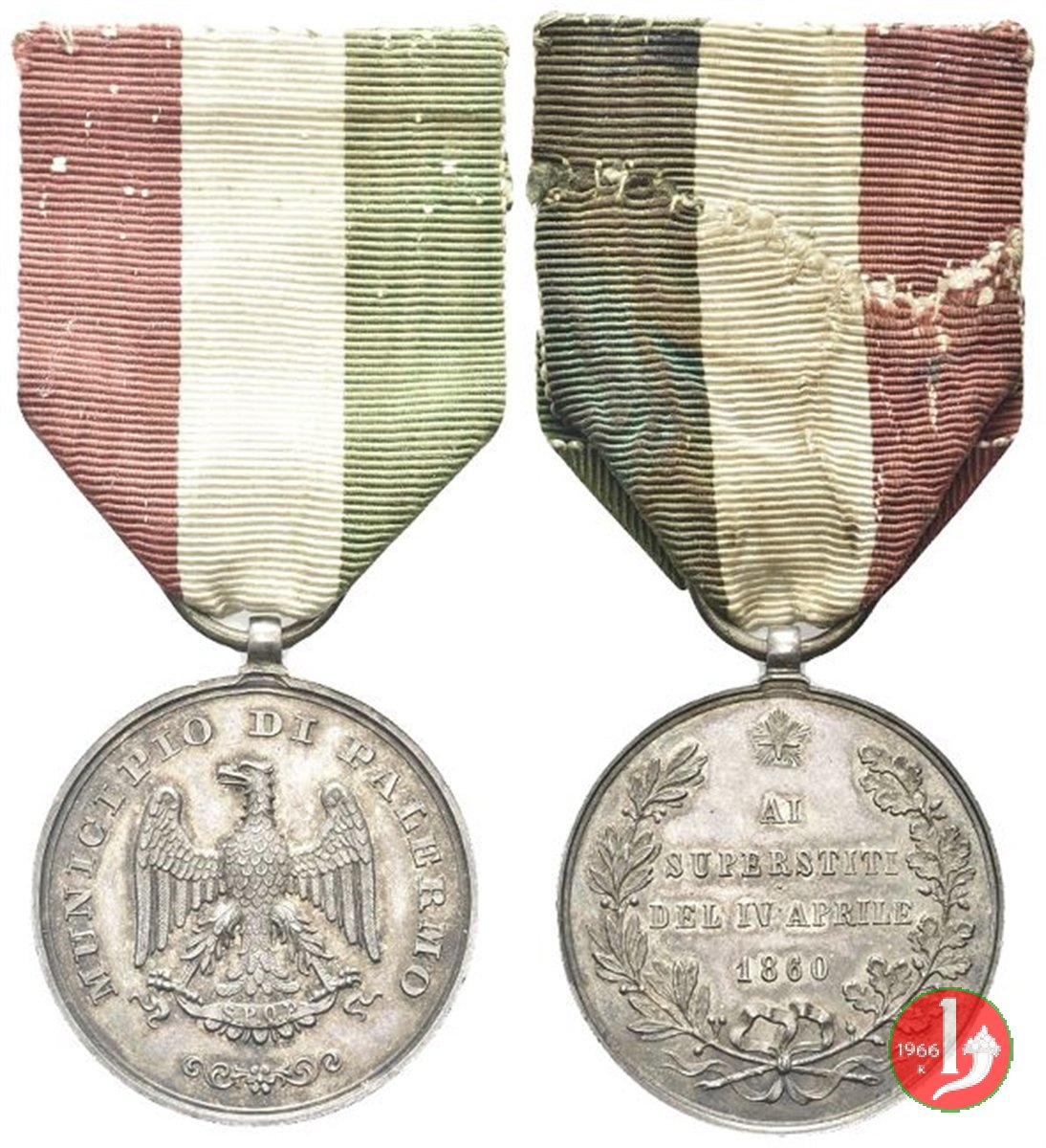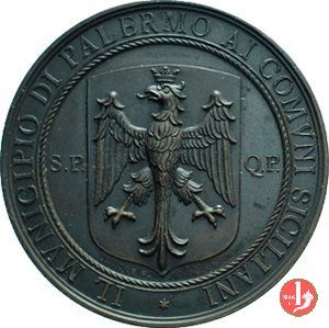 Municipio di Palermo - Ai Superstiti del 1860 Obverse: MUNICIPIO DI PALERMO Aquila ad ali spiegate regge nastro con gli artigli su cui: SPQP in basso: fregio | |