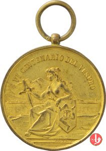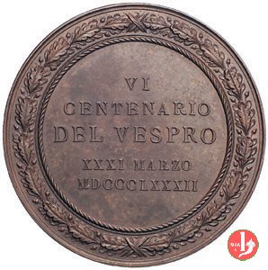VI Centenario del Vespro 1882 Obverse: SESTO CENTENARIO DEL VESPRO = 1882 trofeo d'armi e nastro | |