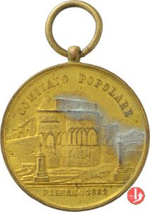Municipio di Palermo - 600° Vespro 1882 Obverse: IL MVNICIPIO DI PALERMO AI COMVNI SICILIANI * Aquila ad ali speigate, entro scudetto in basso, a sx: BARONE F. | |