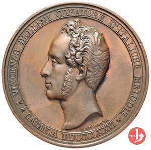 Vincenzo Bellini 1876 Obverse: VINCENZO BELLINI CREATORE D'ITALICHE MELODIE = * CATANIA MDCCCLXXVI * busto a sx sotto: F. SPERANZA | |