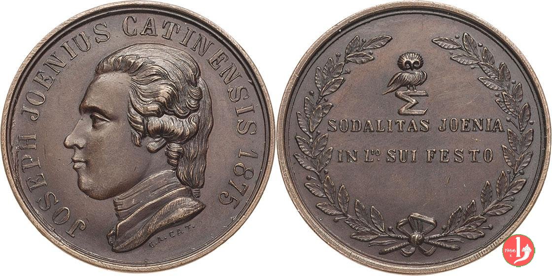 50° Accademia Gioenia 1875 Obverse: JOSEPH JOENIUS CATINENSIS 1875 busto a sx con capelli raccolti sotto: G. A. CAT. SODALITAS JOENIA = IN L.° SUI FESTO | |