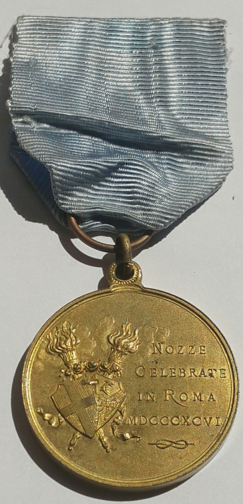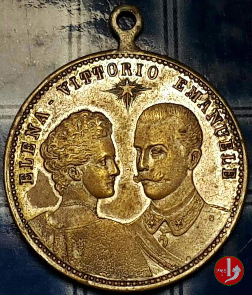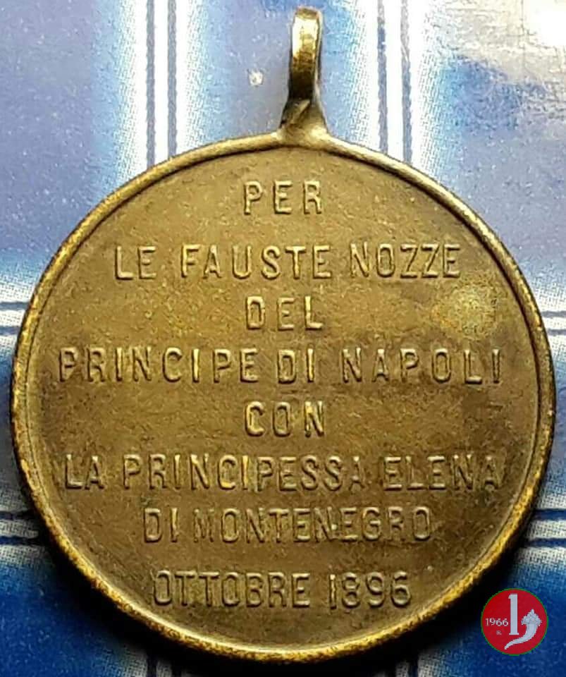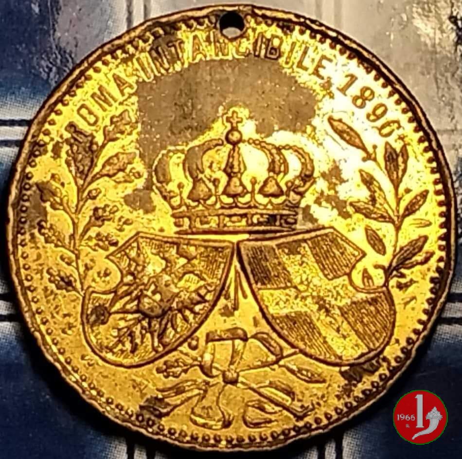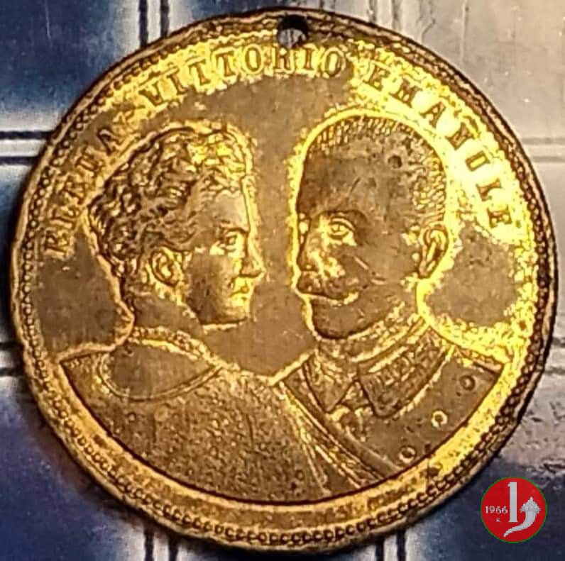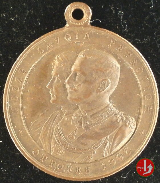 Ascesa al Trono Dritto: AGLI _ AUGUSTI _ SOVRANI D' _ ITALIA busti affrontati sormontati da corona in basso: F. PONZI nel campo: SPOSATI = IL 24 OTTOBRE = 1896 = SALITI AL TRONO = IL 30 LUGLIO = 1900 | |