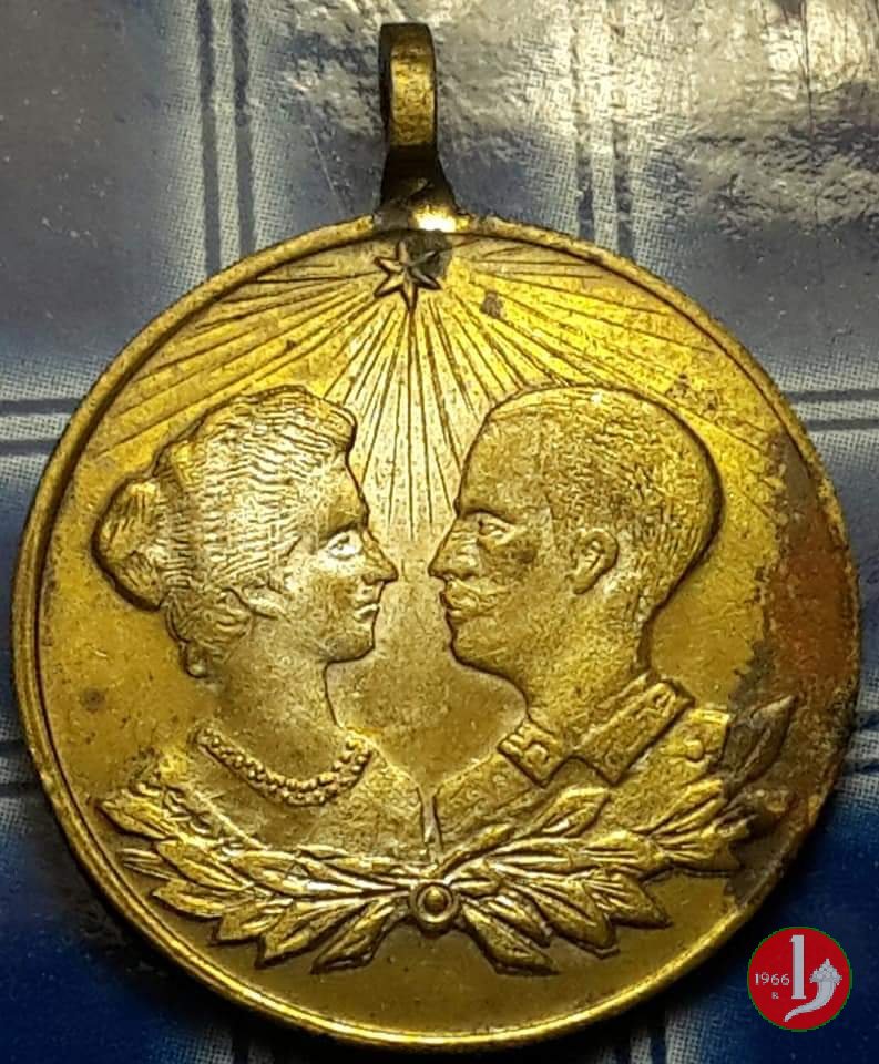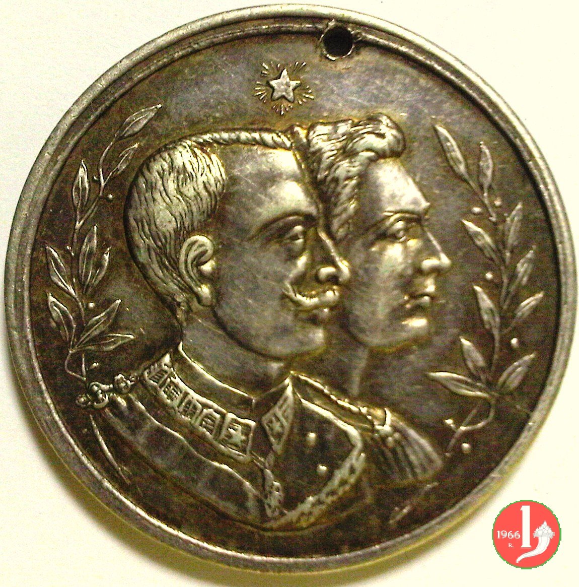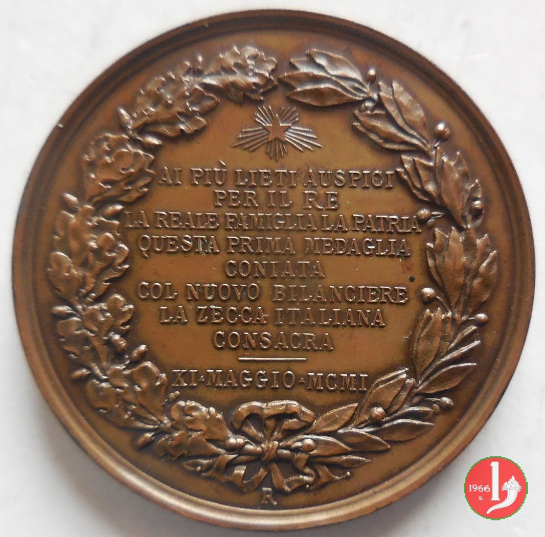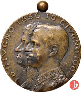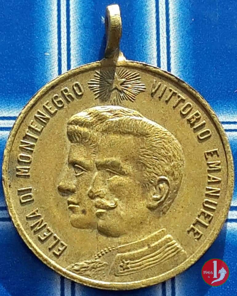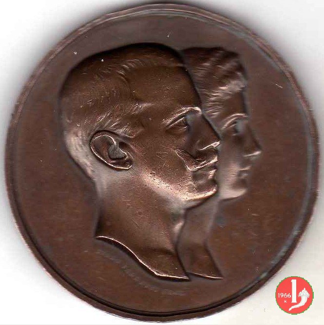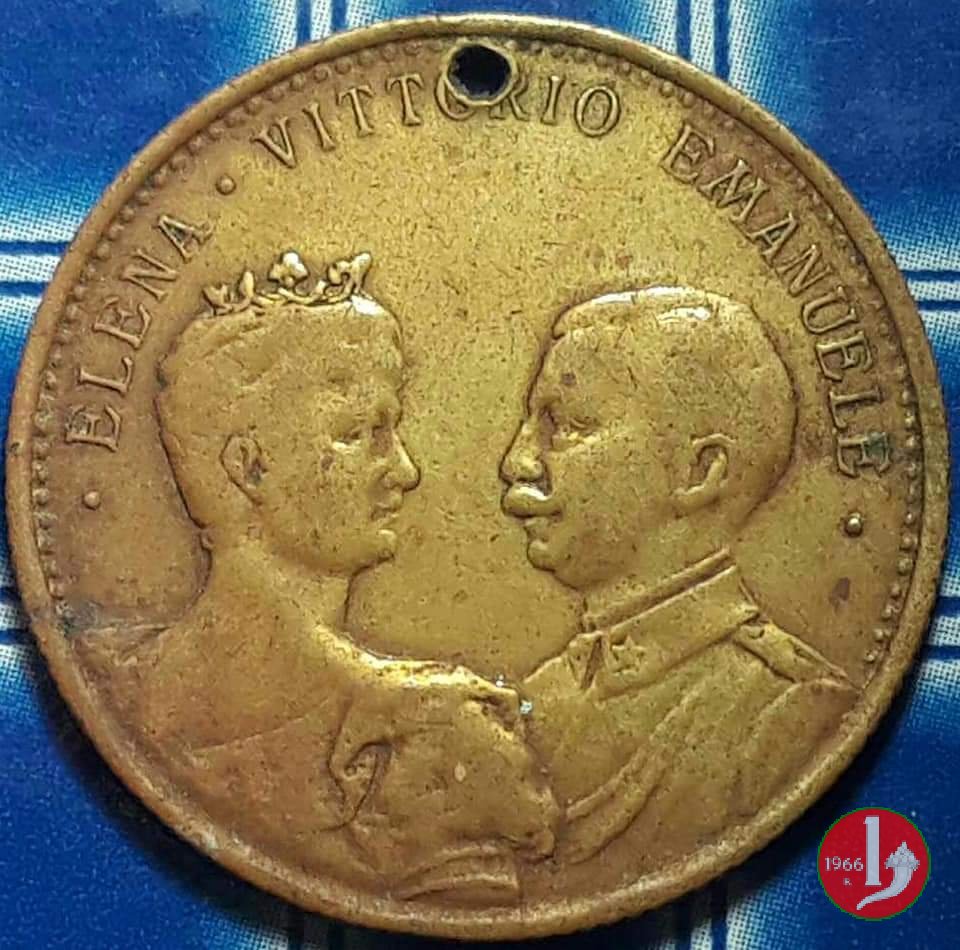 Nozze con Elena del Montenegro e ascesa al Trono Dritto: AGLI _ AUGUSTI _ SOVRANI D' _ ITALIA busti affrontati e sormontati da corona sotto: F. PONZI nel campo: SPOSATI = IL 24 OTTOBRE = 1896 = SALITI AL TRONO = IL 30 LUGLIO = 1900 | |