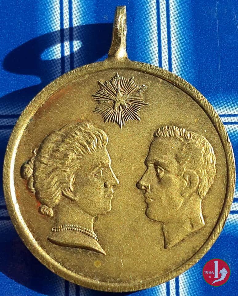 Matrimonio di Aimone di Savoia-Aosta e Irene di Grecia 01-07-1939 Dritto: Stemmi coronati ed affiancati dei Savoia e della Casata di Oldenburg - Glücksburg sotto: 1 LVGLIO 1939 XVII = FIRENZE in basso, a dx: JOHNSON | |