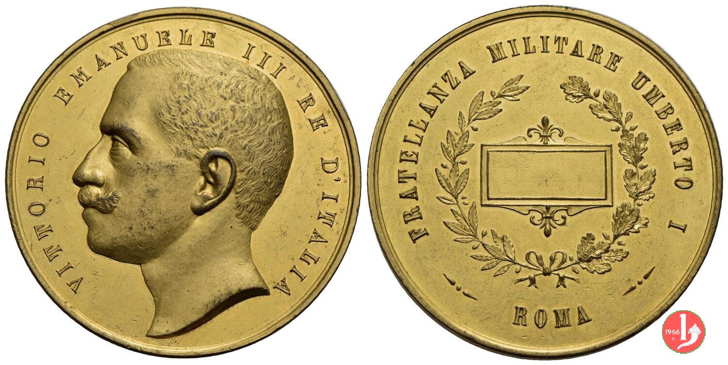 Fratellanza Militare Umberto I Dritto: VITTORIO EMANUELE III RE D'ITALIA busto nudo a sx tra rami d'alloro e quercia legati in basso da nastro: dedica entro targa sotto: 1900 | |