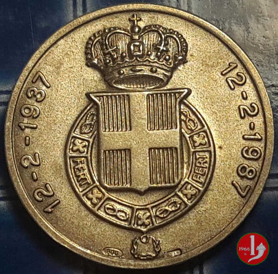 Matrimonio Eugenio di Savoia e Lucia di Borbone 29-10-1938 Dritto: tra cinque nodi d'amore con interposti gigli: Stemmi affiancati e coronati Savoia e Borbone EL (sovrapposte) = 29 OTTOBRE 1938 • XVII | |