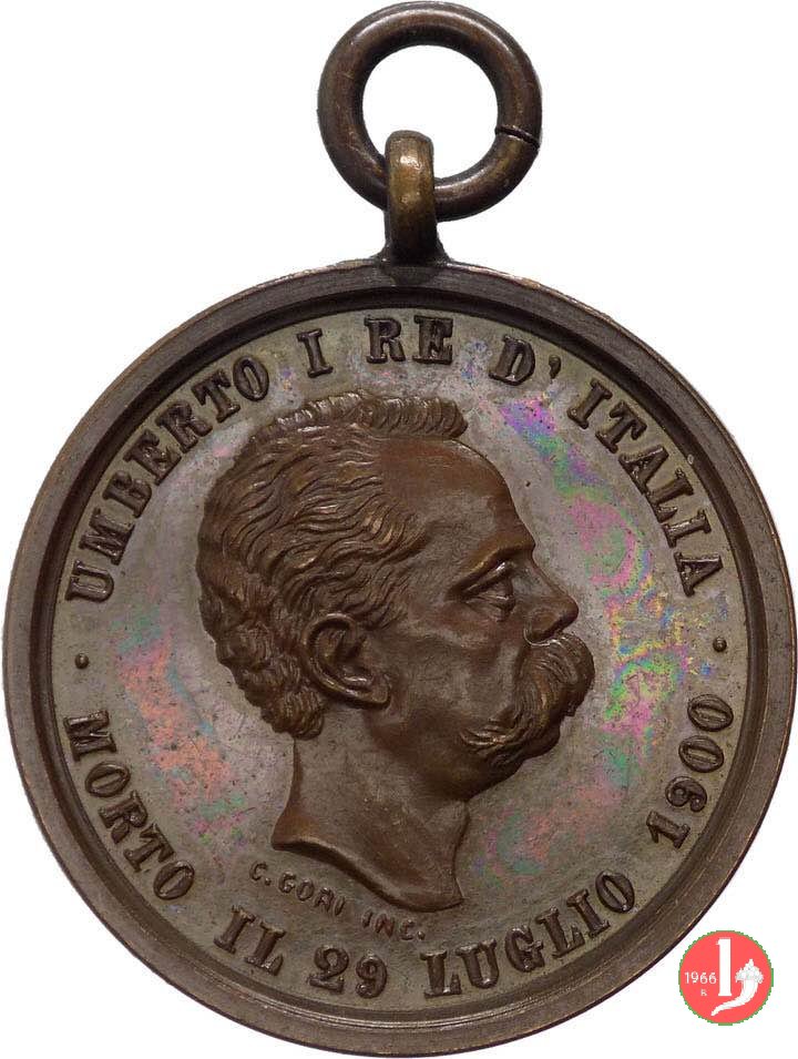 Vittorio Emanuele III e Umberto I Dritto: UMBERTO I RE D'ITALIA = MORTO IL 29 LUGLIO 1900 testa nuda a dx sotto: L. GORI INC. testa nuda a dx | |