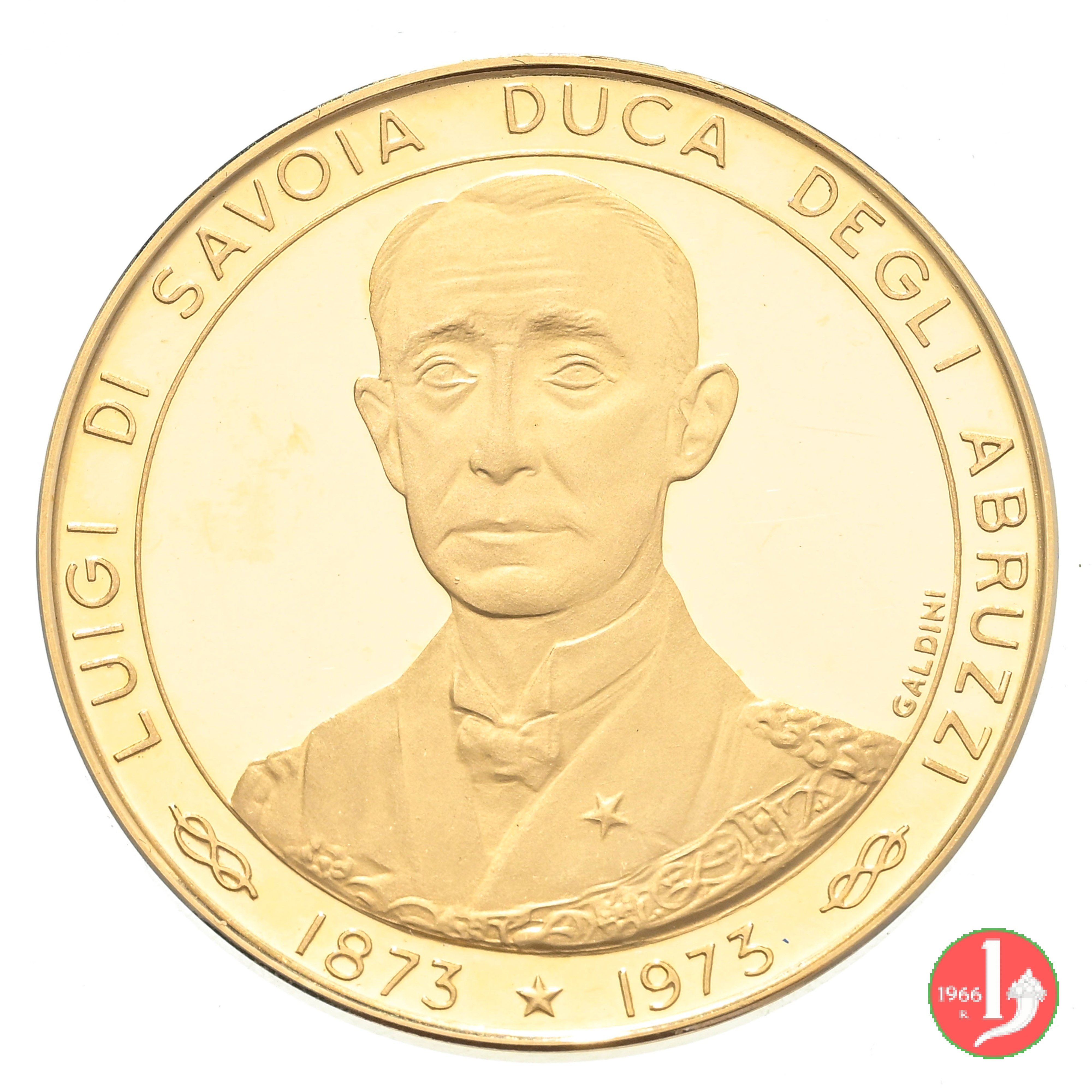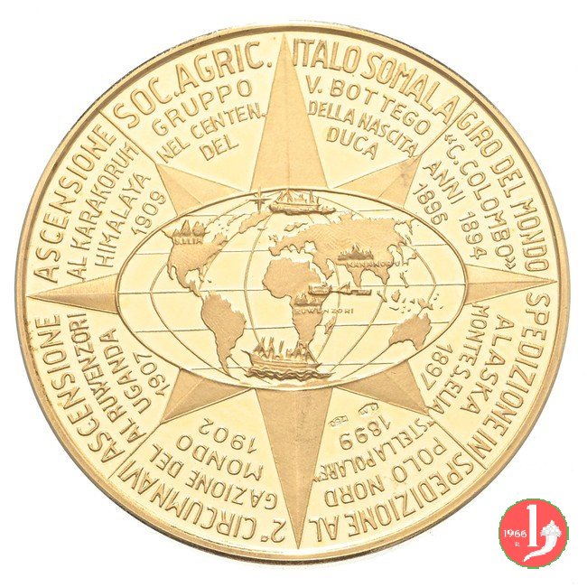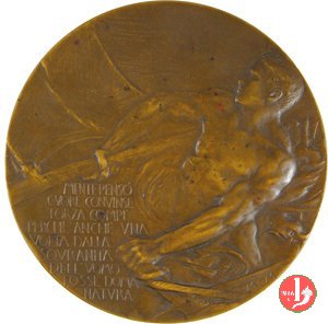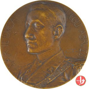 Luigi Amedeo di Savoia Duca degli Abruzzi 1900 Dritto: S.A.R. IL DVCA _ DEGLI ABRVZZI busto di 3/4 a sx in alta uniforme nel campo, a dx: JOHNSON = BE MOD. CA INC. nel campo, a sx: MENTE PENSO' = CVORE CONVINSE = FORZA COMPI' = PERCHE ANCHE VNA = VOLTA DALLA = SOVRANITA' = DELL'VOMO = FOSSE DOMA = NATVRA in basso, a dx: MCM | |
