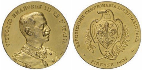 Esposizione Campionaria Internazionale di Firenze Dritto: VITTORIO EMANUELE III RE D'ITALIA busto a dx in uniforme col collare dell'Annunziata in basso a dx: GORI F. Giglio Fiorentino entro cartiglio riquadrato e tra da rami d'alloro | |