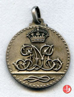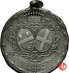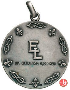 Ferdinando di Savoia e Maria Luisa 1938 Dritto: due putti sorreggono nastro, su cui: 28 FEBBRAIO 1938 Verso: monogramma di Maria Luisa ML, coronato in esergo: nodo d'amore | |