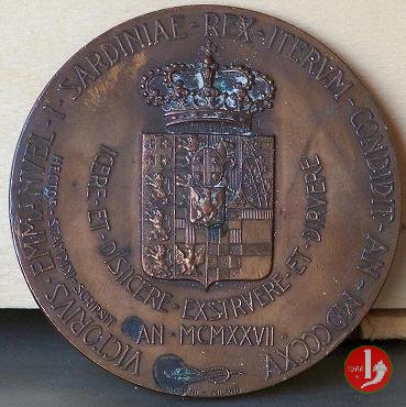 Maria Giovanna Battista Savoia-Nemours 1927 -UdS XXIX-4 Dritto: R • ACADEMIA • MILITARIS • TAVRINENSIS • A • MARIA • IO • BAP • SAB • DVC • PRIMVM • CONDITA • AN • MDCLXXVII (nodo d'amore) busto velato a sx della Duchessa fermato da filo di perle ed abito ricamato nel campo, circolarmente a sx: HECTOR • STAMPINI • SCRIPSIT Stemma di Maria Giovanna Battista Savoia-Nemours attorno: ICERE • ET • DISIICERE • EXTRVERE • ET • DIRVIRI sotto: • AN • MCMXXVII • in basso: SATE - NI - MILANO | |