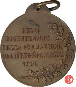 Bicentenario del 18° Regg. Fanteria Dritto: VITTORIO AMEDEO II _ DUCA DI SAVOIA 1703 busto di Vittorio Amedeo II di fronte sulla spalla sx: A.F. a dx: ramo di quercia | |