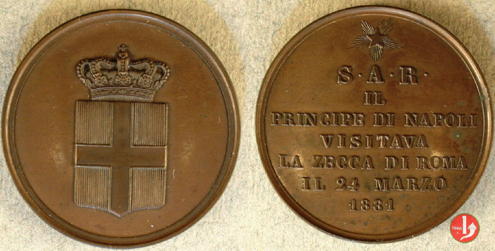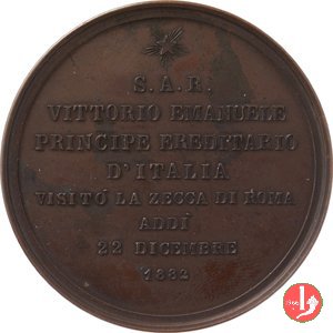 Visita alla Zecca 50mm 1882 Dritto: S. A. R. IL PRINCIPE DI NAPOLI * Stemma Savoia coronato | |