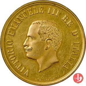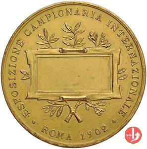 Esposizione Internazionale Ceramiche - Bologna 1902 Dritto: VITTORIO EMANUELE III RE D'ITALIA busto nudo a sx sotto: S • J • campo vuoto entro ghirlanda d'alloro legata da nastri incrociati | |
