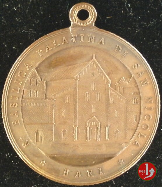 Nozze con Elena Petrovich - Bari 1896 Dritto: NOZZE SAVOIA PETROVICH = ✠ OTTOBRE 1896 ✠ busti accollati a sx di Elena del Montenegro con fascia e di Vittorio Emanuele con alta uniforme e collare della SS. Annunziata a dx preso il bordo interno: S.J. vista della Basilica di San Nicola a Bari | |