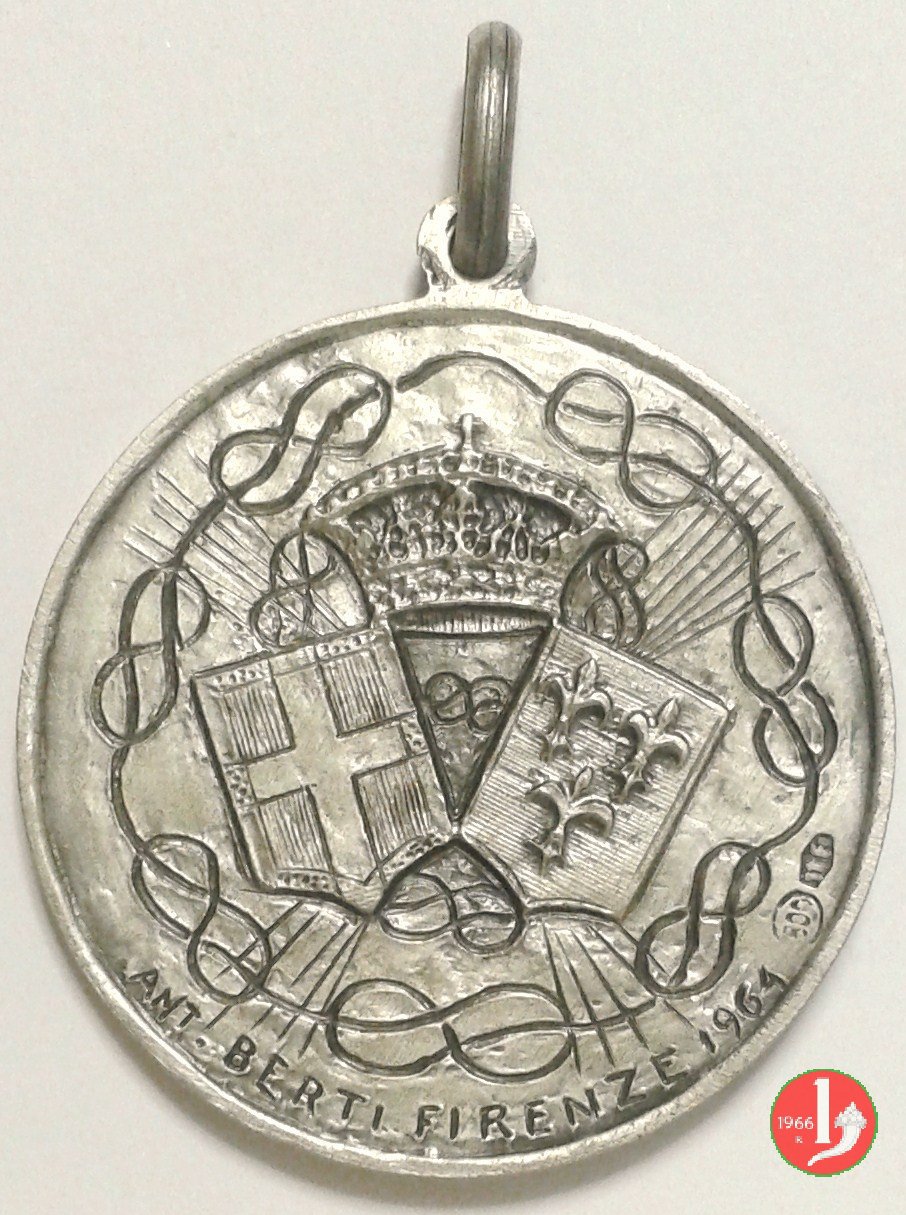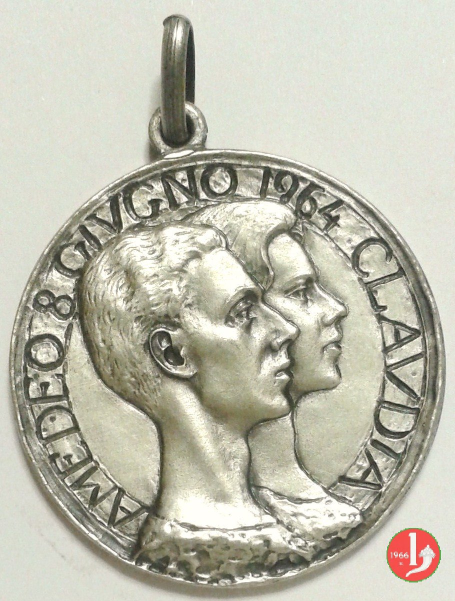 Amedeo d'Aosta e Claudia d'Orleans 1964 Dritto: AMEDEO 8 GIVGNO 1964 CLAVDIA teste accollate a dx in basso, circolarmente: ANT. BERTI FIRENZE 1964 | |