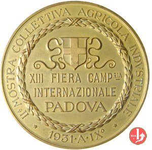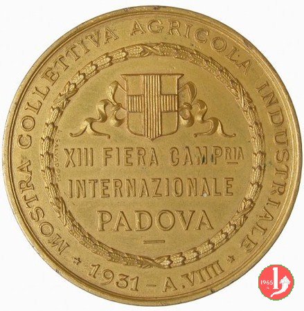 Reverse: entro corona di spighe di grano: I MOSTRA PROVINCIALE ANIMALI DA CORTILE COLOMBI E APICOLTURA MODENA 1931