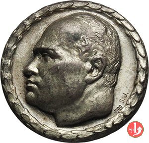 Obverse: testa di Mussolini a sx entro festone d' alloro