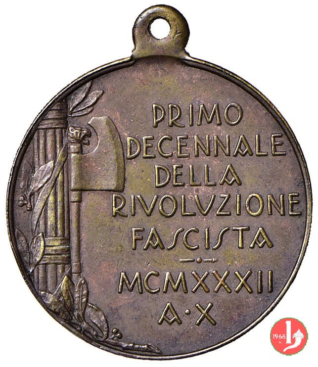 Reverse: nel campo: PRIMO = DECENNALE = DELLA = RIVOLVZIONE = FASCISTA = - • - = MCMXXXII = A • X