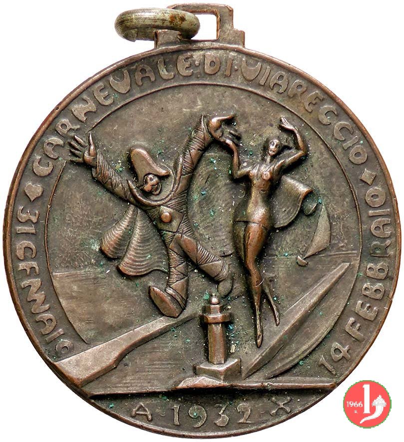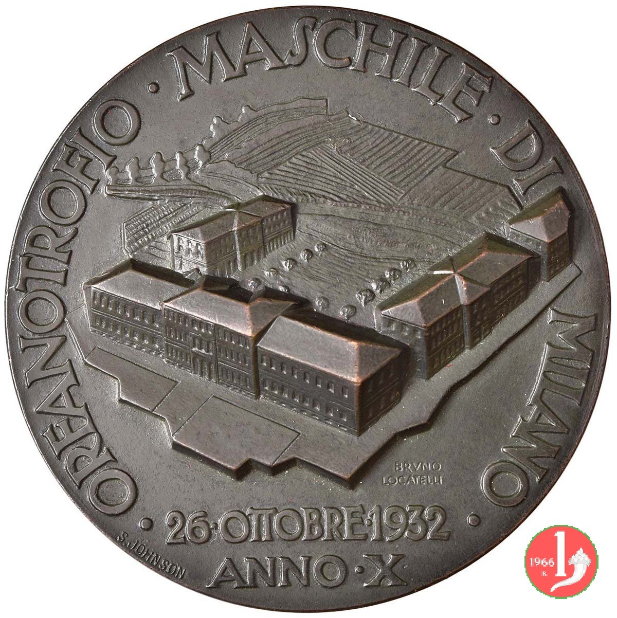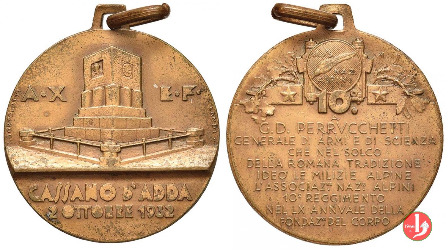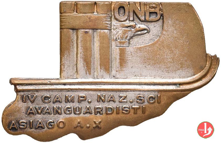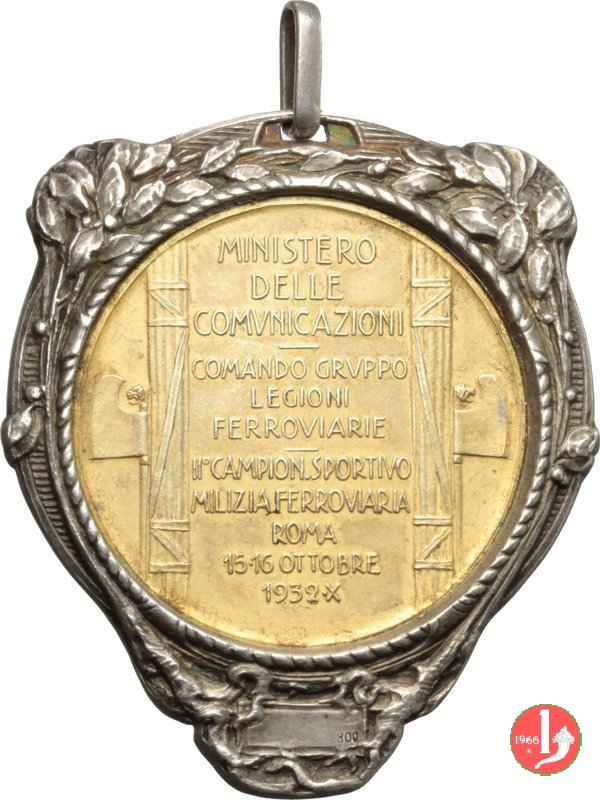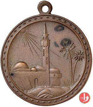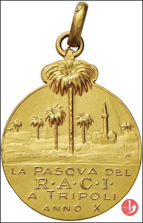 nel campo entro cerchio perlinato e sormontata da aquila imperiale su fascio orizzontale: vedi note dedica incisa = * 1932 • X * = V CONGR. NAZ. TRIPOLI
