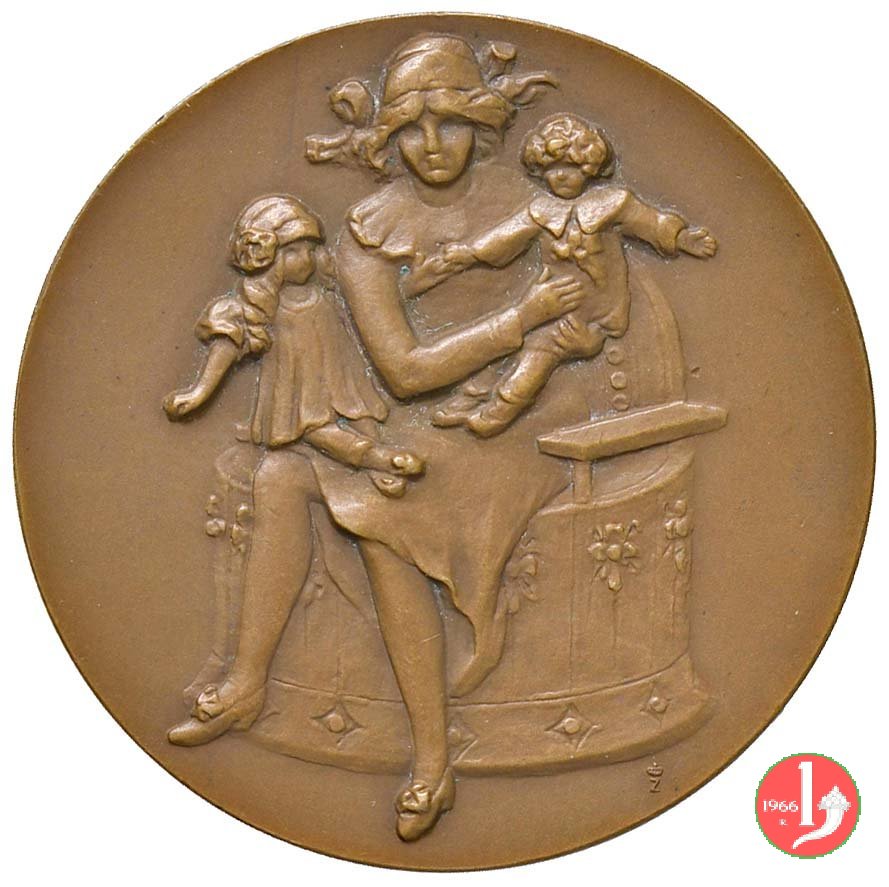 Verso: nel campo: L' ISTITVTO DEI CIECHI = DEL FIORE DI OPEROSA VITA = E DI SALDE SPERANZE = SI VOLGE GRATO = AL CONTE DOTT. = FRANCESCO CAVAZZA = CHE GENEROSO E SAGGIO = OR SONO CINQUANT' ANNI = EFFICACEMENTE L' IDEO' E LO VOLLE = - = BOLOGNA A. MCMXXXI DELL' E.F.