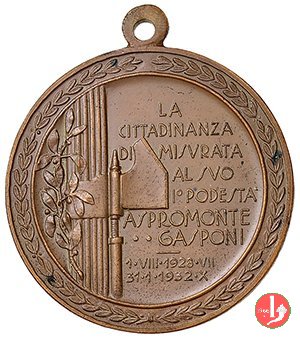 nel campo, a dx: LA = CITTADINANZA = DI _ MISURATA = AL SVO = I° PODESTA' = ASPROMONTE GASPONI = I • VIII • 1928 • VII = 31 • 1 • 1932 • X