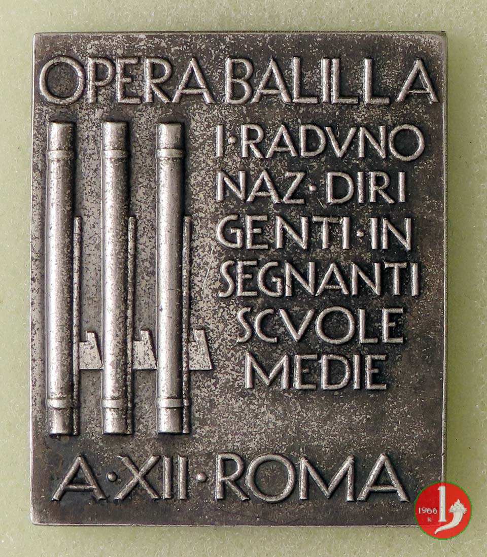 Verso: logo OND su targa ornata da fasci verticali e tra rami di quercia e d'alloro