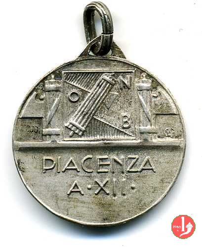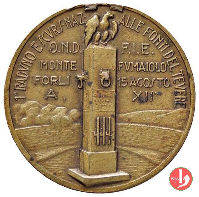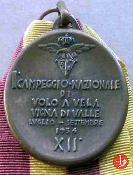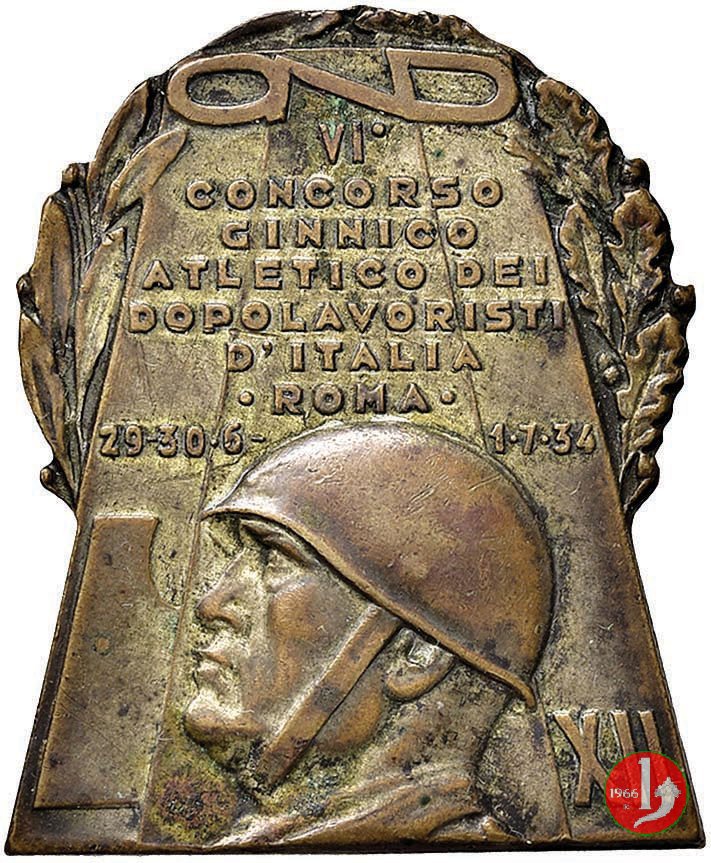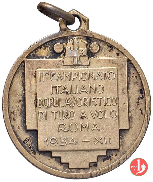 Verso: nel campo entro targa sormontata da logo OND: II° CAMPIONATO = ITALIANO = DOPOLAVORISTICO = DI TIRO A VOLO = ROMA = 1934 - XII