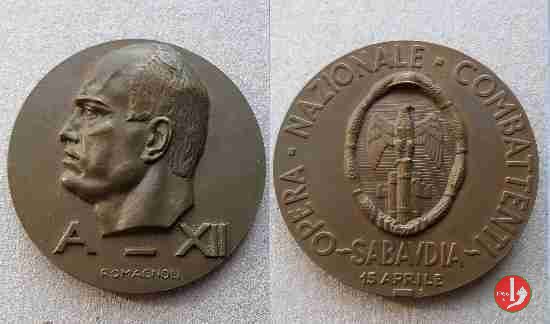 Verso: AQUAM SALUTEM LUCEMQ SARDINIAE DEDIT TIRSO MUSSOLINIA COGHINAS