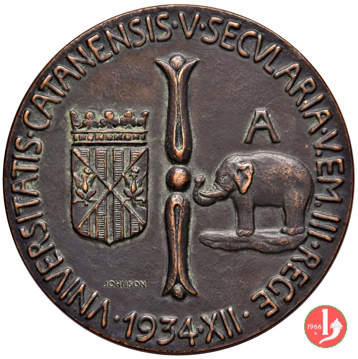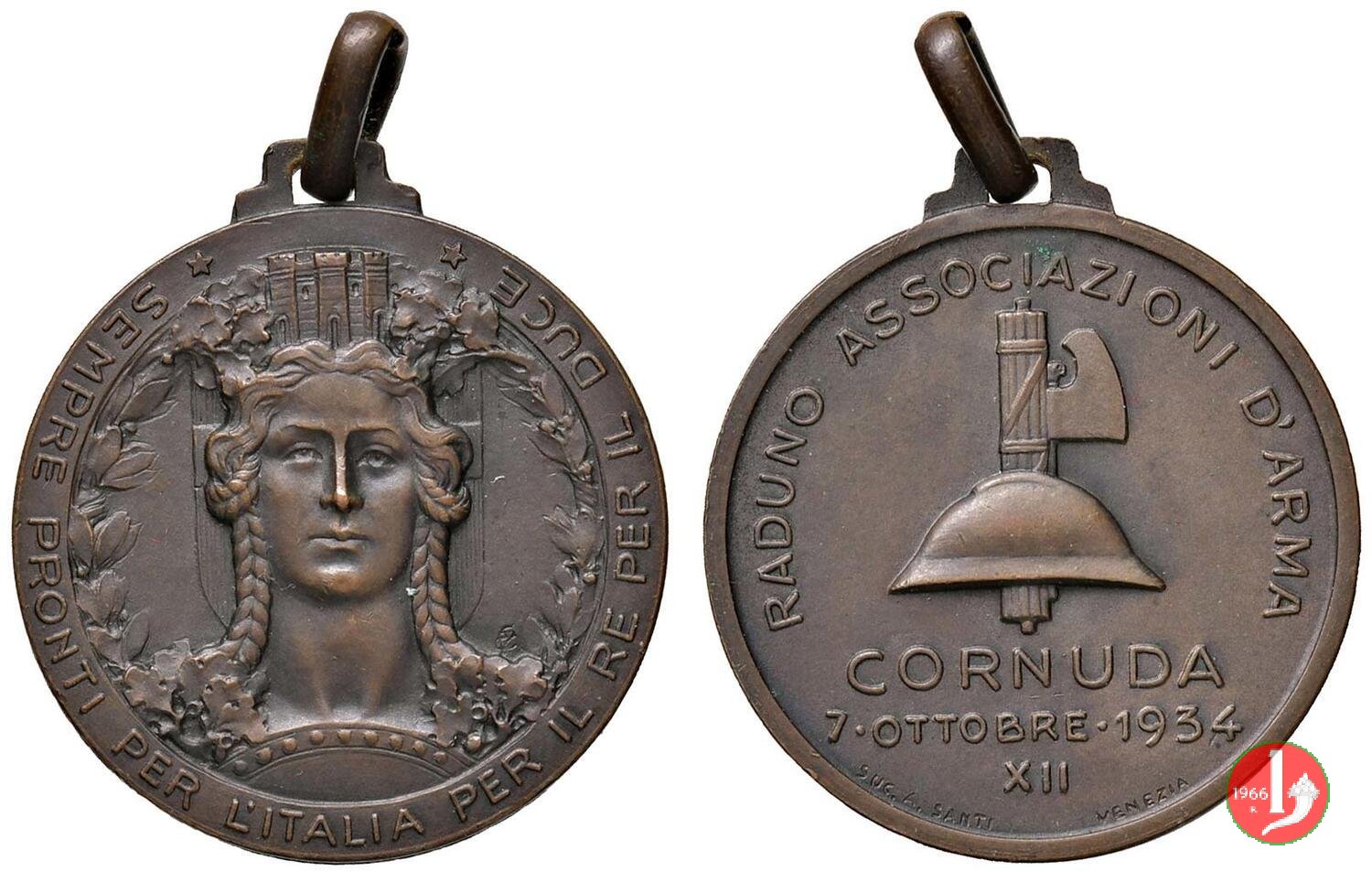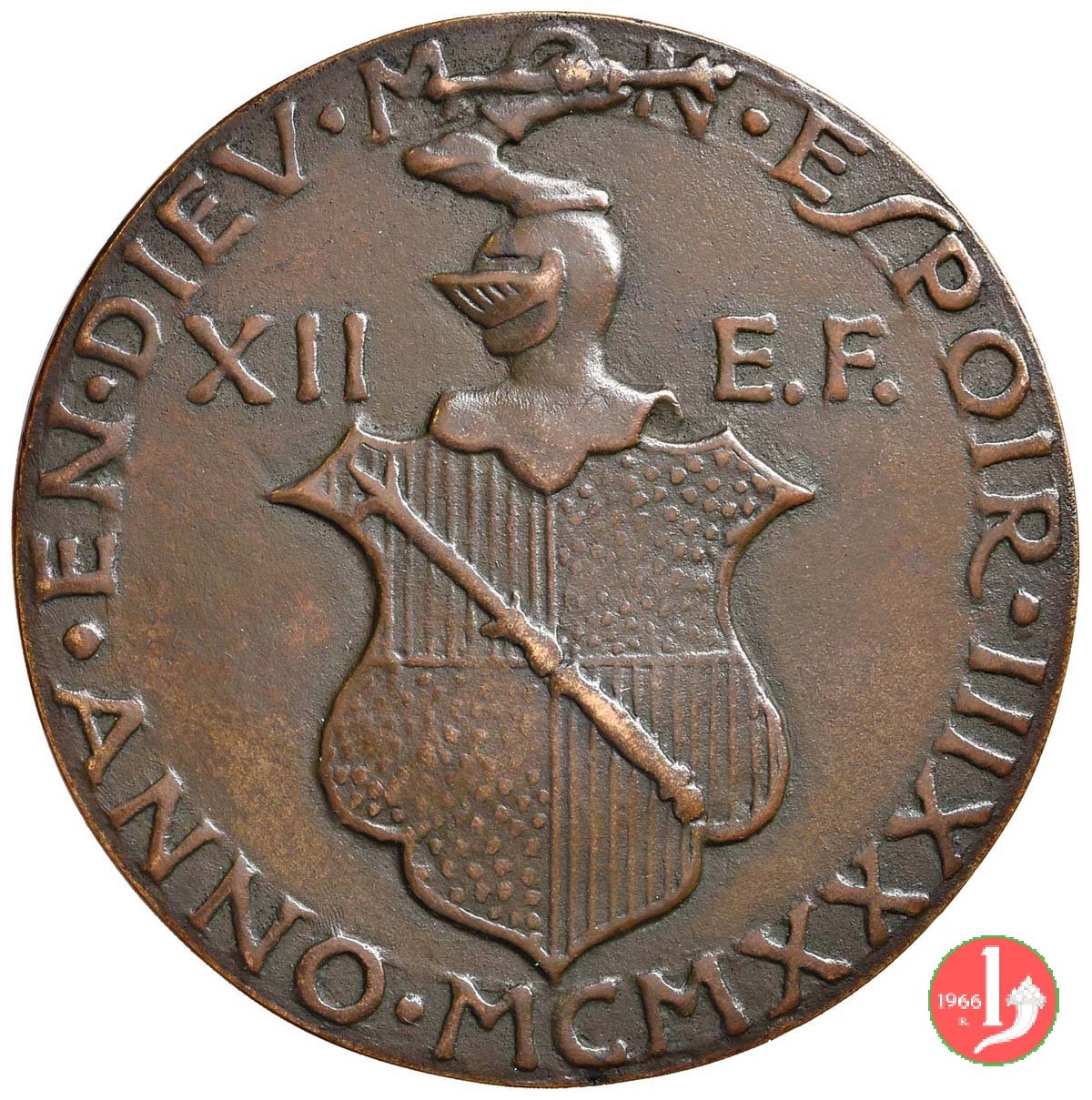 in esergo: stemma coronato tra fasci, smaltato in blu; a dx: 1934 = XII
