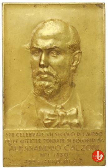 Verso: nel campo: DI = ARRIGO FVZIER = ACCLAMATO PRESIDENTE ONORARIO = LA BANCA MVTVA = POPOLARE DI BERGAMO = RICONOSCENTE RICORDA ED ESALTA = L' OPERA INSIGNE = PER OLTRE SETTE LVSTRI DATA = ALL' AMMINISTRAZIONE = 1896-1934 XII E.F.