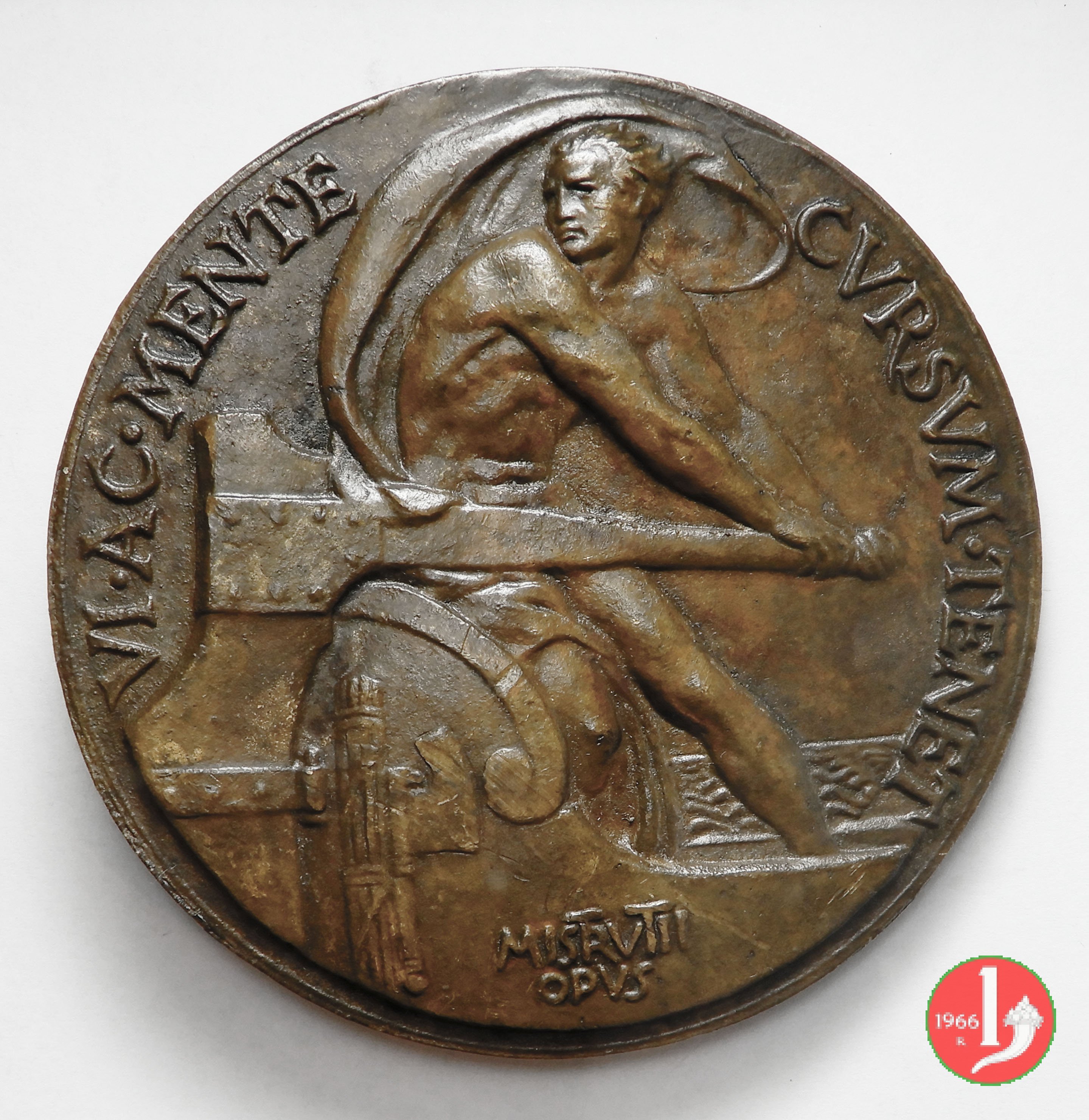 Direttissima Bologna-Firenze -C10 Obverse: MONS _ CESSIT _ PERGITE IRE operaio a petto nudo regge picco e ruota, volto a dx in basso: XI.XI.1929 = (XIII) sotto a sx: SJ monti tra le due torri di Bologna e la torre di Arnolfo di Palazzo Vecchio a Firenze al centro, entro cartella tra due fasci: IMPRESA = GIUSEPPE CRAZZINI = IMBOCCO NORD = - = IMPRESA = ANGIOLINI BORINI BETTANINI = POZZI DI CA LANDIDO = (titolo K18) | |