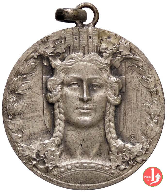 Accademia Nazionale Scherma Napoli -C101 Obverse: guerriero medioevale con armatura regge scudo e spada e sullo sfondo castello con torrione Reverse: entro cornice di fregi floreali con mascherone in basso e sormontato da stemma con fascio su campo giallo e amaranto: ACCADEMIA NAZIONALE DI SCHERMA NAPOLI nel campo: C.N.I.S. = CAMPIONATI = EUROPEI = APRILE 1929 = VII | |