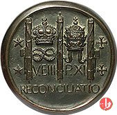 Conciliazione Stato-Chiesa - Reconciliatio 116mm Obverse: testa di 3/4 a sx di Mussolini ai lati: A _ VII sotto: RECONCILIATIO | |