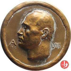 Decennale del Partito Naz. Fascista -C8 Obverse: testa di Mussolini a sx ai lati: A _ VIII sotto alla A: G.C. in basso: S.J. ai lati: FVNDIT _ HVMO = VICTVM _ TELLVS • | |