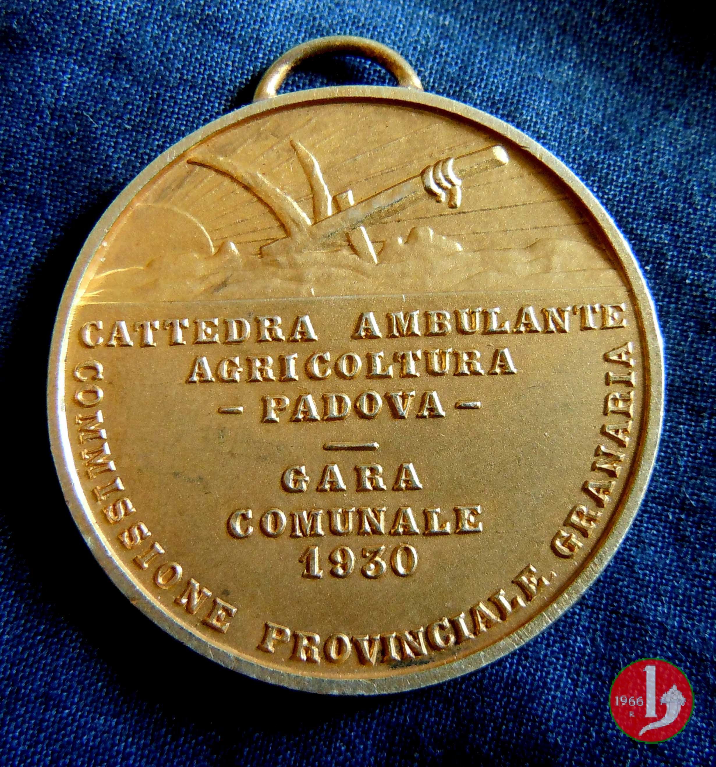 Battaglia del Grano Padova -C6 Obverse: testa a sx di Mussolini sul taglio collo: MISTRVZZI sotto: DVX e spiga sotto: CATTEDRA AMBULANTE = AGRICOLA = - PADOVA - = GARA DISTRETTALE = 1930 in basso circolarmente: COMMISSIONE PROVINCIALE AGRARIA | |