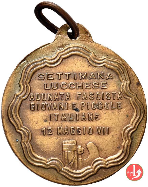 Settimana Lucchese - Adunata -C- Obverse: Giovane ragazza in piedi presso un cippo su cui è inciso un ramo di palma in basso a dx: G. ROMAGNOLI | |